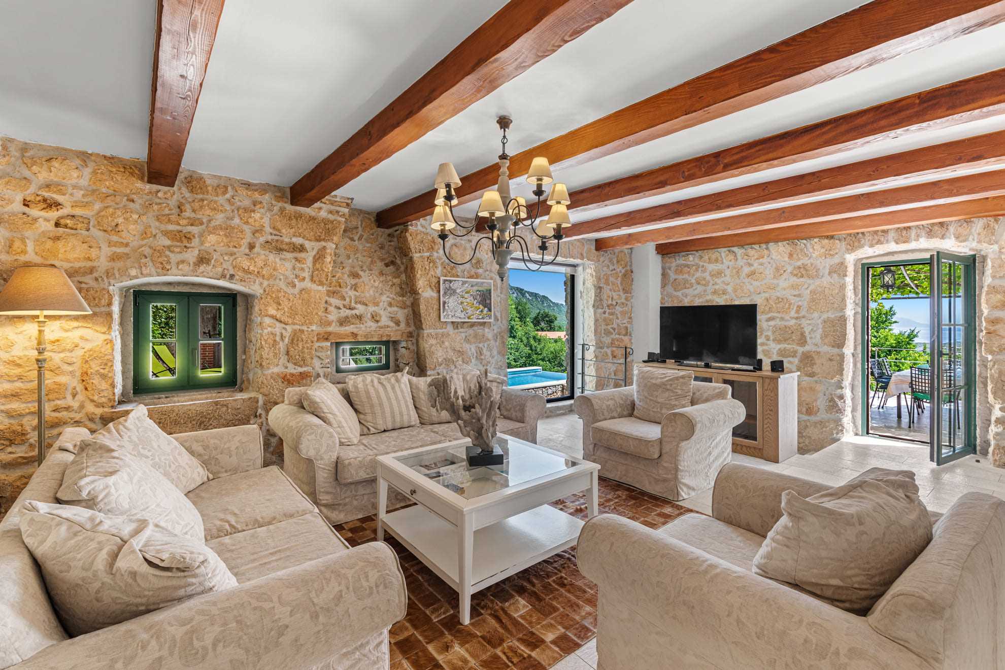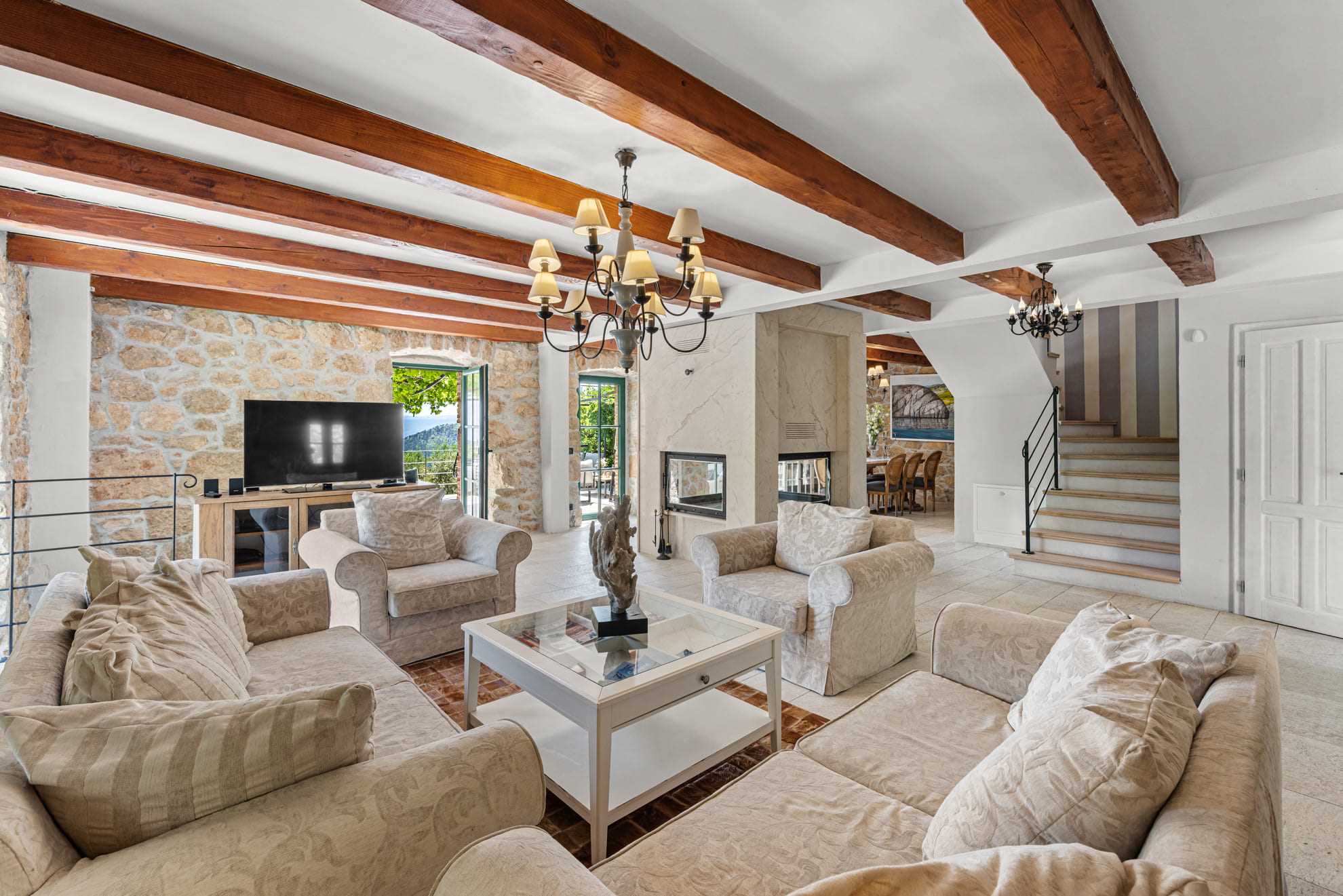 Willkommen in Ihrem perfekten Urlaubsparadies! Diese exquisite Ferienvilla verbindet den Charme eines geschmackvoll renovierten alten Steinhauses mit modernem Komfort und luxuriöser Ausstattung. Auf einem großzügigen 1500 m² großen Grundstück lädt ein beheizter Pool zum Entspannen und Sonnenbaden ein. Genießen Sie laue Sommerabende in der voll ausgestatteten Sommerküche und lassen Sie die idyllische Atmosphäre auf sich wirken. Die Villa verfügt über vier elegant eingerichtete Schlafzimmer, jedes mit eigenem Bad, Fernseher und Klimaanlage. Perfekt für Familien oder Gruppen, bietet jede Suite maximale Privatsphäre und Komfort. Alle Badezimmer sind mit modernen Duschen ausgestattet, und ein zusätzliches Gäste-WC sorgt für zusätzlichen Komfort. Ein zusätzlicher Anbau beherbergt ein weiteres Schlafzimmer, ideal für Gäste oder für mehr Privatsphäre.