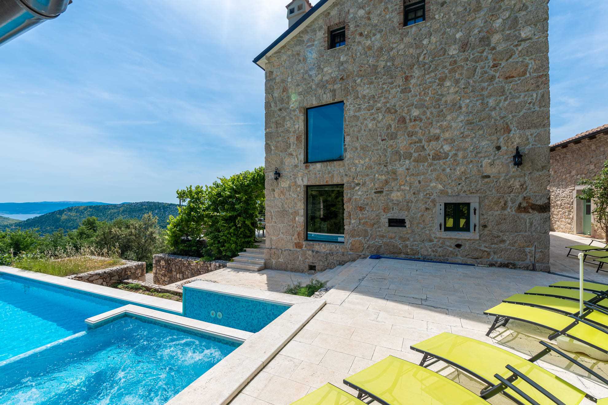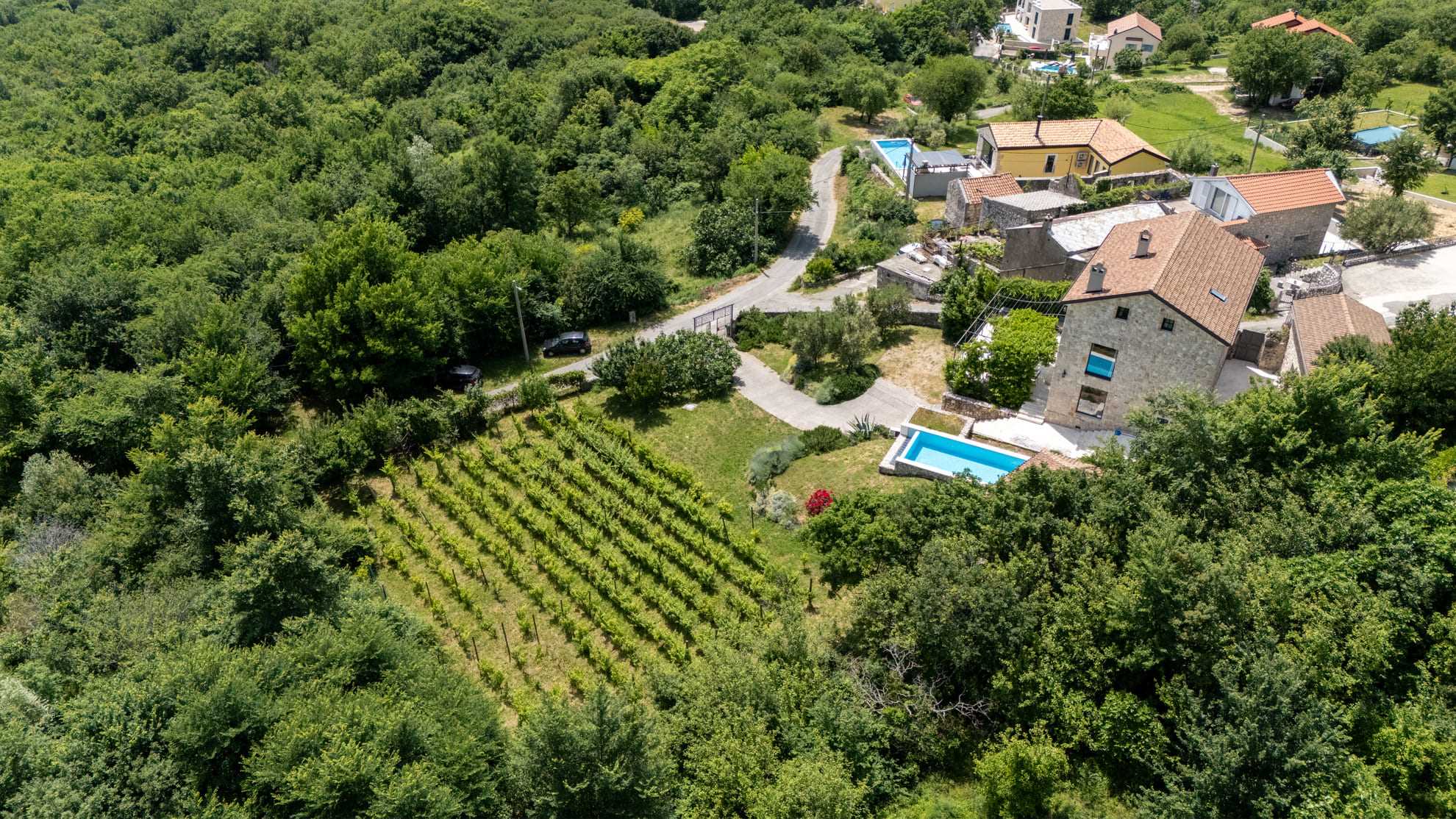 Das gesamte Anwesen ist vollklimatisiert und sorgt so bei jedem Wetter für ein angenehmes Raumklima. Auf dem komplett eingezäunten Grundstück verfügen Sie nicht nur über einen eigenen Weinberg, sondern auch über einen privaten Parkplatz für Ihre Fahrzeuge. Ein besonderes Highlight ist der atemberaubende Blick auf das glitzernde Meer, der Sie jeden Morgen zum Lächeln bringt. Erleben Sie unvergessliche Tage in dieser einzigartigen Villa in Bribir – der perfekte Ort für einen Urlaub voller Entspannung und Genuss! Wir freuen uns auf Sie!