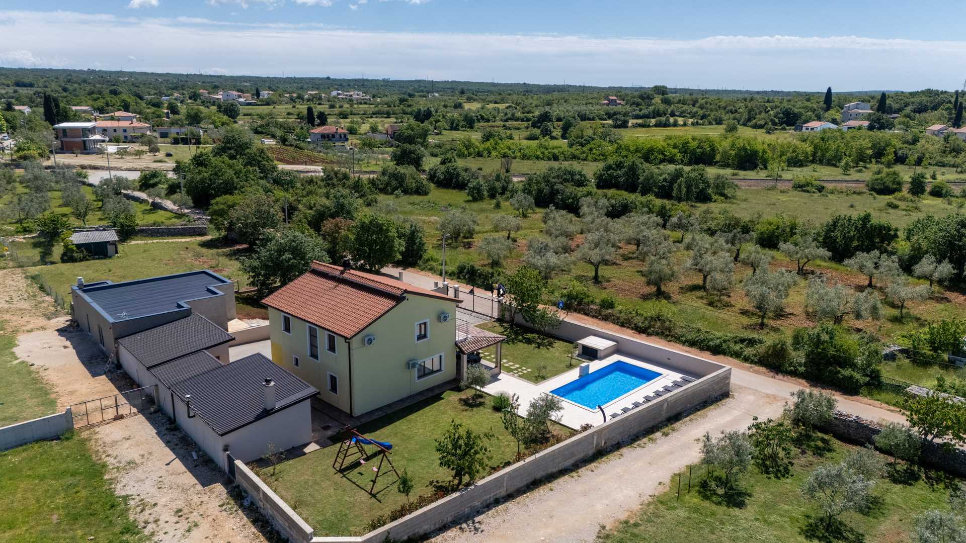 Entdecken Sie die Villa Renata, ein traumhaftes Refugium im Herzen Istriens in der Nähe von Vodnjan. Diese charmante Villa bietet mit fünf gemütlichen Schlafzimmern und zwei modernen Badezimmern Platz für bis zu zehn Gäste und ist ideal für Familien oder Gruppen von Freunden. Im Erdgeschoss finden Sie eine helle und einladende Küche mit einem geräumigen Essbereich und einen komfortablen Wohnbereich, der zum Entspannen einlädt. Genießen Sie die Sonne und die idyllische Atmosphäre im Freien mit einer voll ausgestatteten Sommerküche und einem Grill, perfekt für gesellige Abende im Freien. Der wunderschöne Pool mit einer Fläche von 36 m² ist der ideale Ort, um sich an heißen Tagen abzukühlen und die Aussicht auf die umliegende Landschaft zu genießen. Für Ihre Fahrzeuge gibt es einen geräumigen Parkplatz mit Platz für bis zu vier Autos. Die Villa Renata ist der perfekte Ort für einen unvergesslichen Urlaub inmitten der malerischen Schönheit Istriens. Buchen Sie jetzt und erleben Sie unvergessliche Momente in dieser traumhaften Villa!