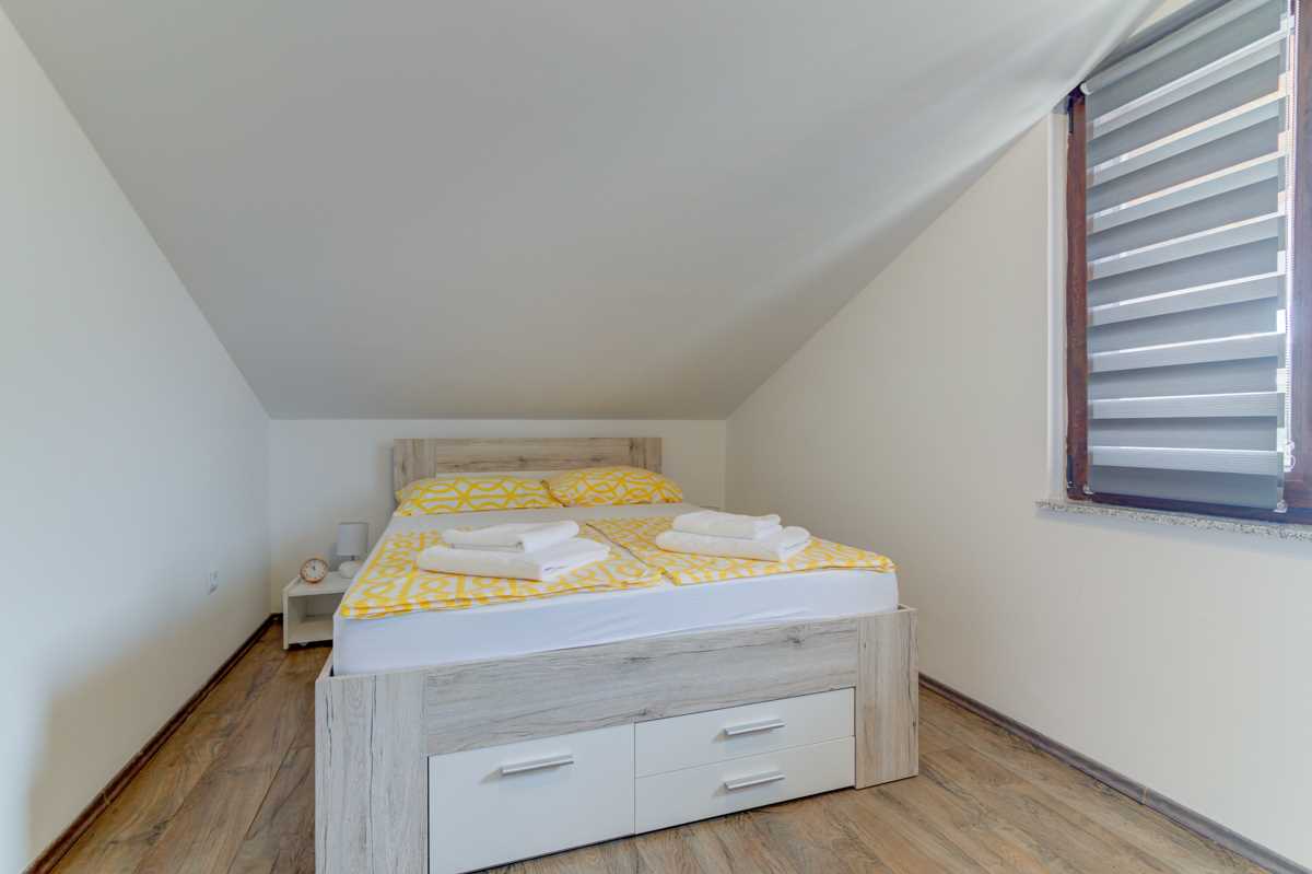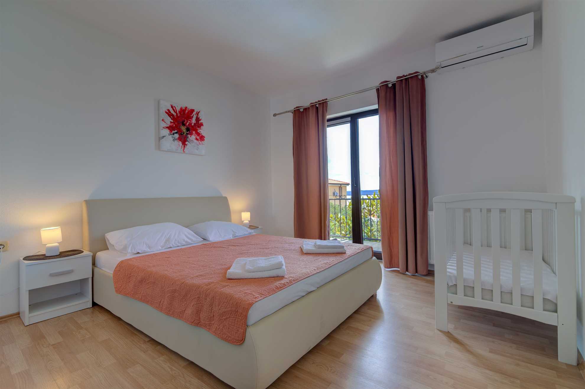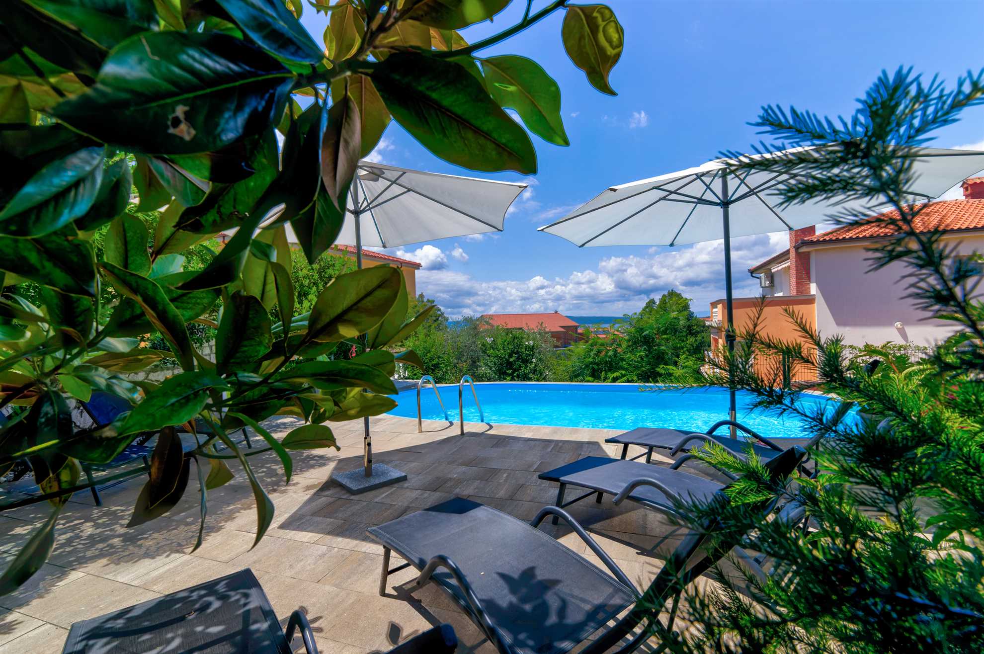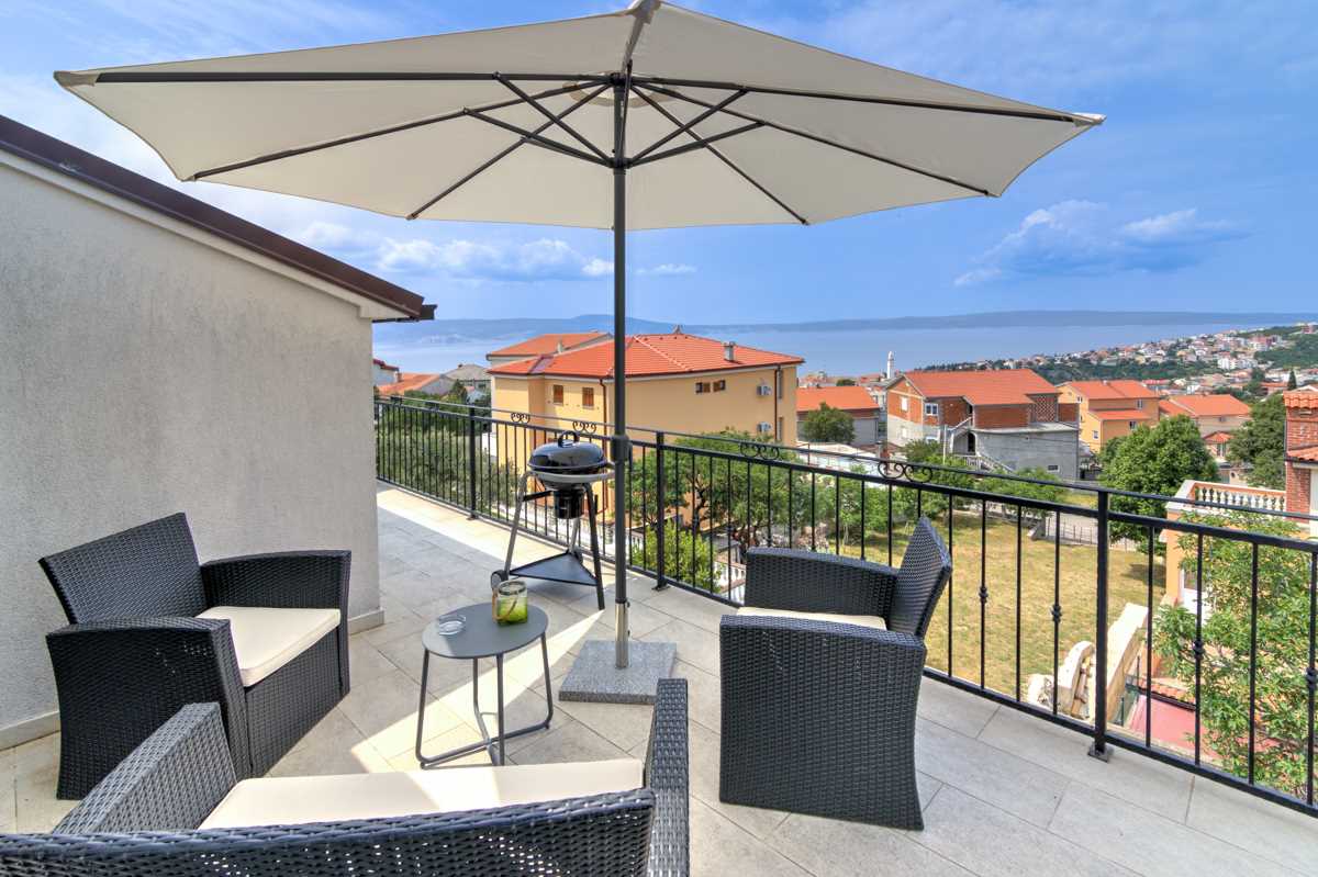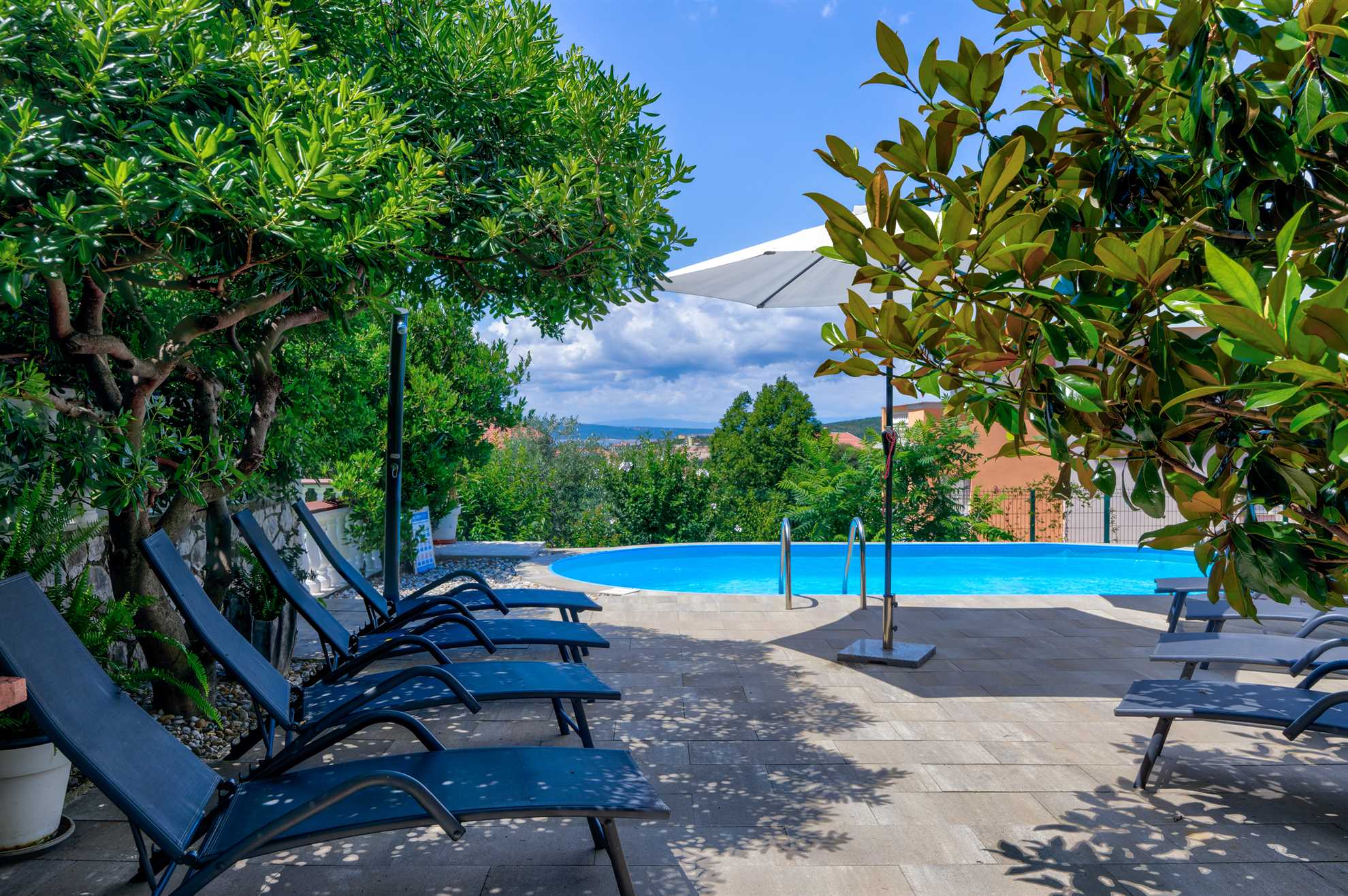Welcome to our villa in Novi Vinodolski, an enchanting jewel in the picturesque Kvarner Bay. Our spacious holiday home can accommodate up to twelve guests and is perfect for larger families or groups looking to spend an unforgettable holiday on the Croatian coast. The villa has five tastefully decorated bedrooms that ensure maximum comfort. Two spacious bathrooms are available to meet the needs of our guests. The breathtaking 28 m² pool invites you to relax and enjoy the warm rays of sunshine. From the spacious terrace and upper bedrooms, our guests can enjoy beautiful views of the sparkling sea, creating an unparalleled atmosphere at sunrise and sunset. Our property is divided into two separate, fully equipped apartments, each with its own external entrance. This maximizes flexibility for our guests while maintaining privacy. The owners live in the other half of the holiday home. The location of the villa, just 500 m from the beach, makes it the ideal choice for anyone who values the proximity to the sea and the liveliness of the coast. With a combination of modern comfort and traditional charm, our villa in Novi Vinodolski offers the perfect setting for an unforgettable holiday on the Croatian Adriatic coast. We warmly invite you to relax in our welcoming property, explore the surrounding beauty and create unforgettable memories.