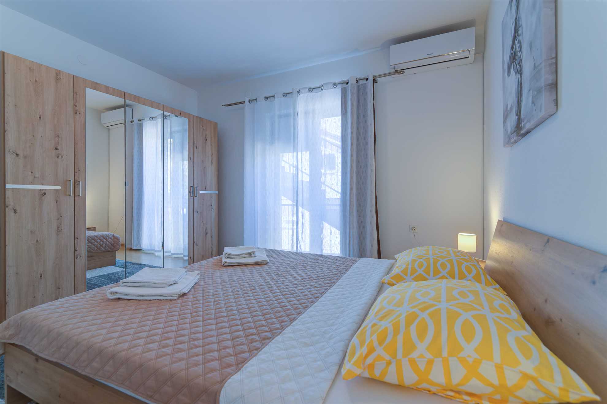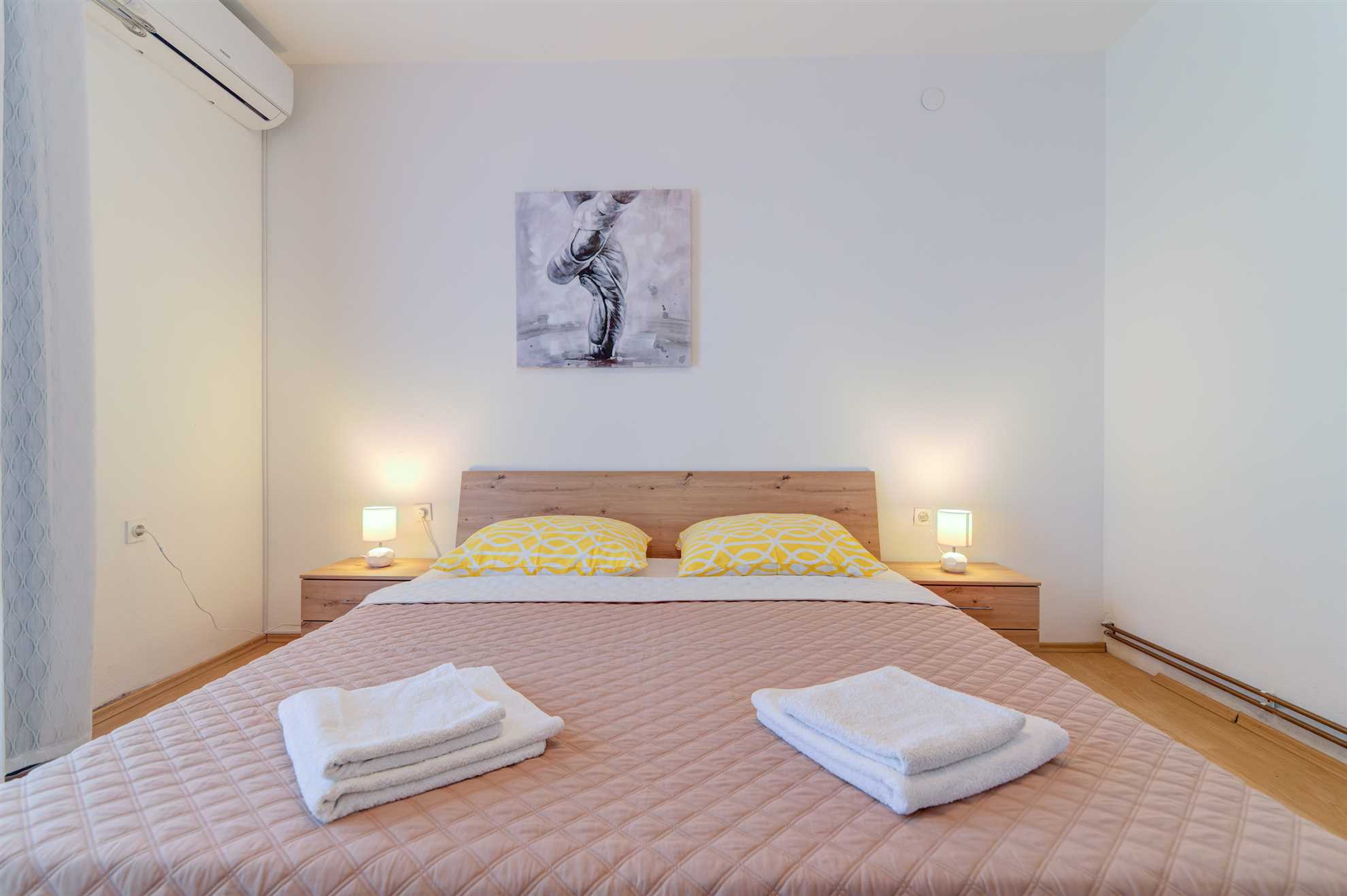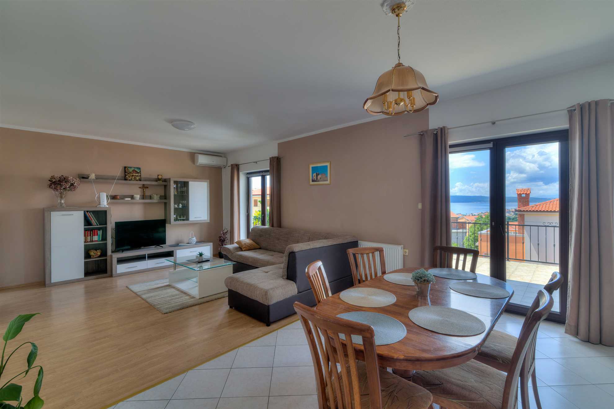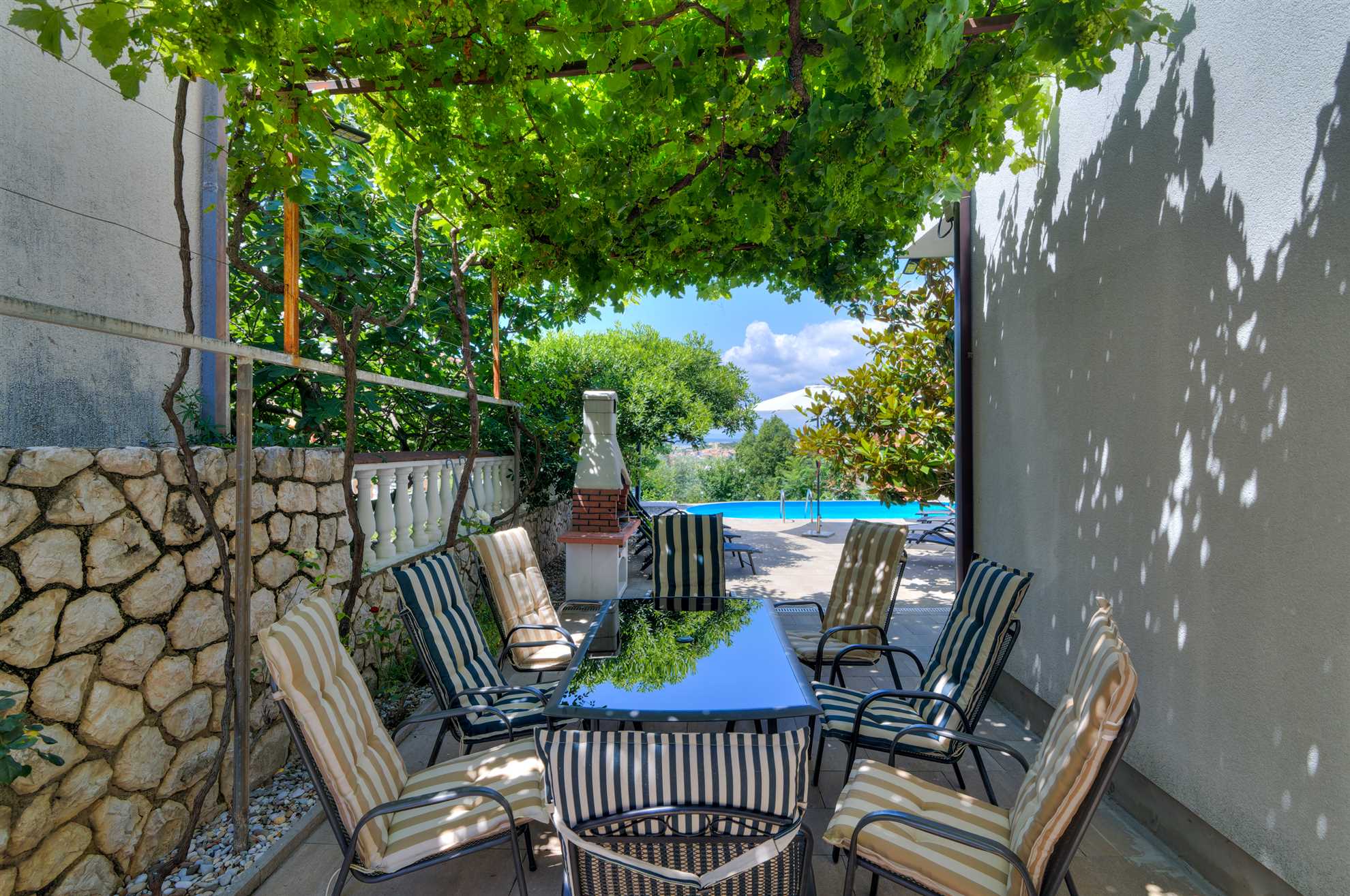 Welcome to our villa in Novi Vinodolski, an enchanting jewel in the picturesque Kvarner Bay. Our spacious holiday home can accommodate up to twelve guests and is perfect for larger families or groups looking to spend an unforgettable holiday on the Croatian coast. The villa has five tastefully decorated bedrooms that ensure maximum comfort. Two spacious bathrooms are available to meet the needs of our guests. The breathtaking 28 m² pool invites you to relax and enjoy the warm rays of sunshine. From the spacious terrace and upper bedrooms, our guests can enjoy beautiful views of the sparkling sea, creating an unparalleled atmosphere at sunrise and sunset. Our property is divided into two separate, fully equipped apartments, each with its own external entrance. This maximizes flexibility for our guests while maintaining privacy. The owners live in the other half of the holiday home. The location of the villa, just 500 m from the beach, makes it the ideal choice for anyone who values the proximity to the sea and the liveliness of the coast. With a combination of modern comfort and traditional charm, our villa in Novi Vinodolski offers the perfect setting for an unforgettable holiday on the Croatian Adriatic coast. We warmly invite you to relax in our welcoming property, explore the surrounding beauty and create unforgettable memories.