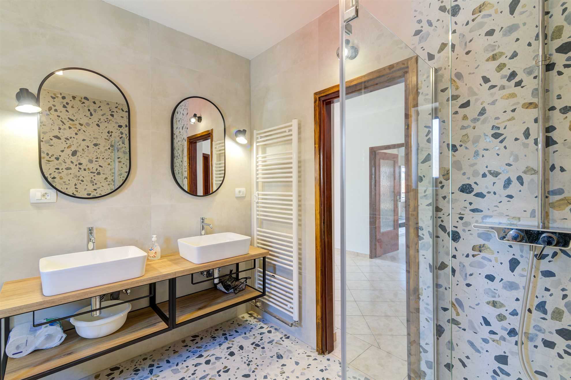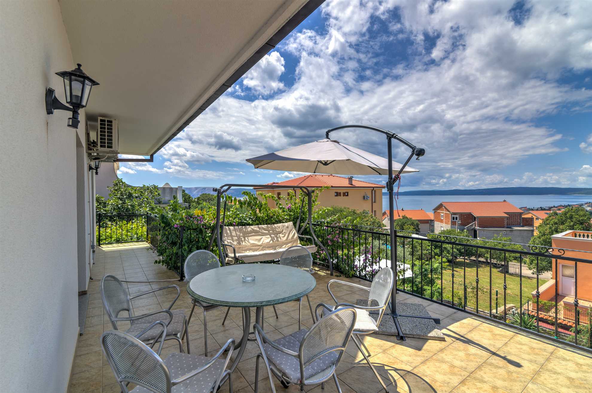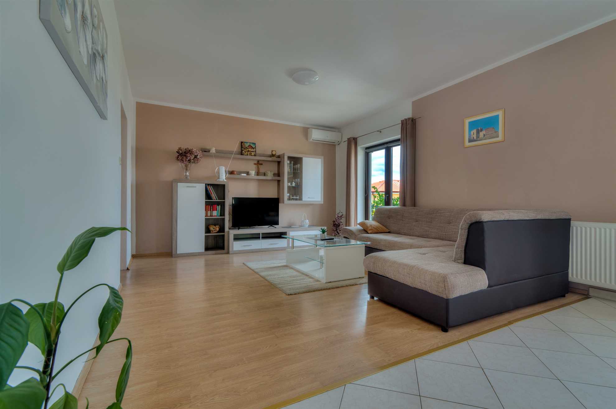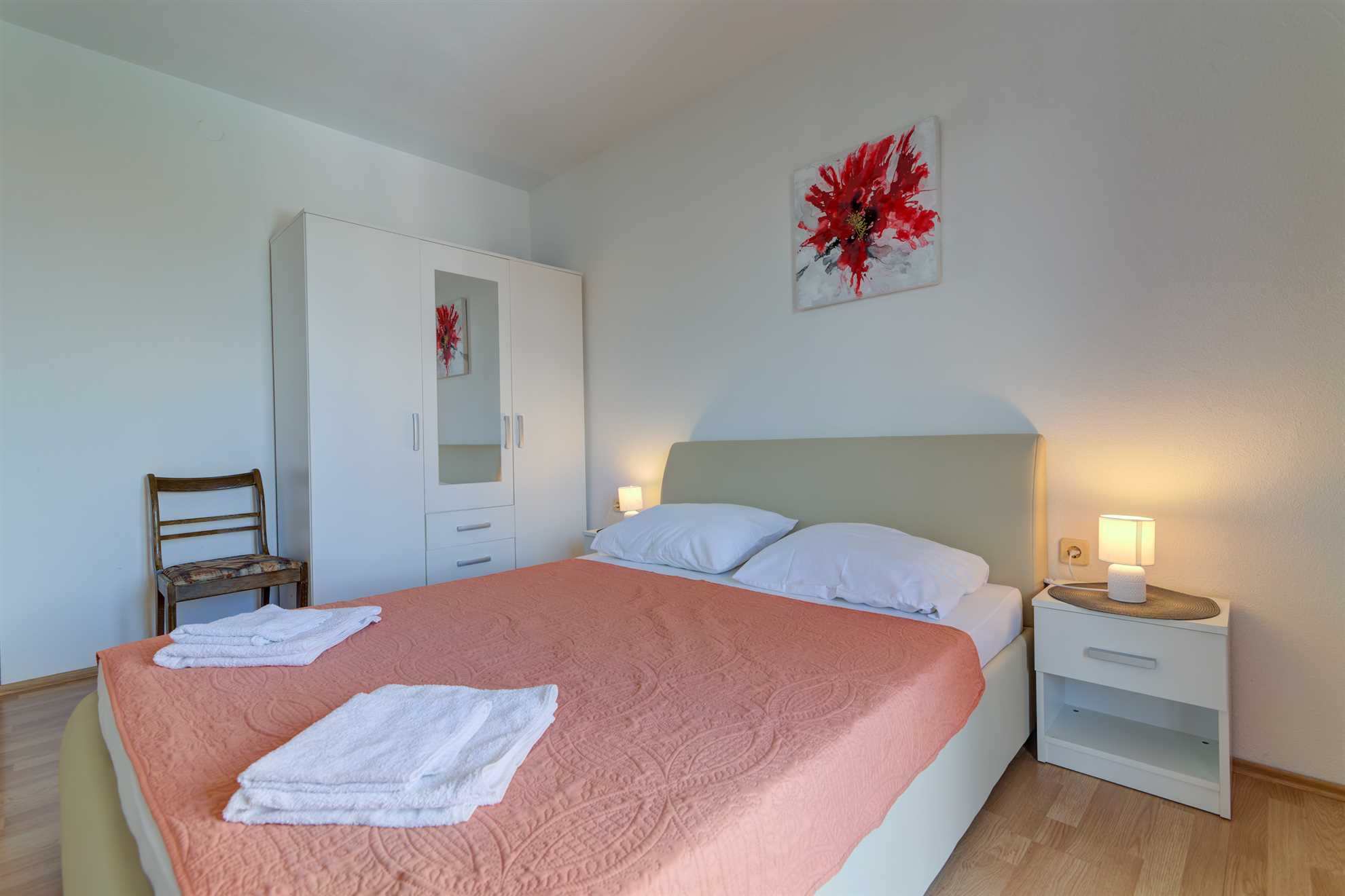 Welcome to our villa in Novi Vinodolski, an enchanting jewel in the picturesque Kvarner Bay. Our spacious holiday home can accommodate up to twelve guests and is perfect for larger families or groups looking to spend an unforgettable holiday on the Croatian coast. The villa has five tastefully decorated bedrooms that ensure maximum comfort. Two spacious bathrooms are available to meet the needs of our guests. The breathtaking 28 m² pool invites you to relax and enjoy the warm rays of sunshine. From the spacious terrace and upper bedrooms, our guests can enjoy beautiful views of the sparkling sea, creating an unparalleled atmosphere at sunrise and sunset. Our property is divided into two separate, fully equipped apartments, each with its own external entrance. This maximizes flexibility for our guests while maintaining privacy. The owners live in the other half of the holiday home. The location of the villa, just 500 m from the beach, makes it the ideal choice for anyone who values the proximity to the sea and the liveliness of the coast. With a combination of modern comfort and traditional charm, our villa in Novi Vinodolski offers the perfect setting for an unforgettable holiday on the Croatian Adriatic coast. We warmly invite you to relax in our welcoming property, explore the surrounding beauty and create unforgettable memories.