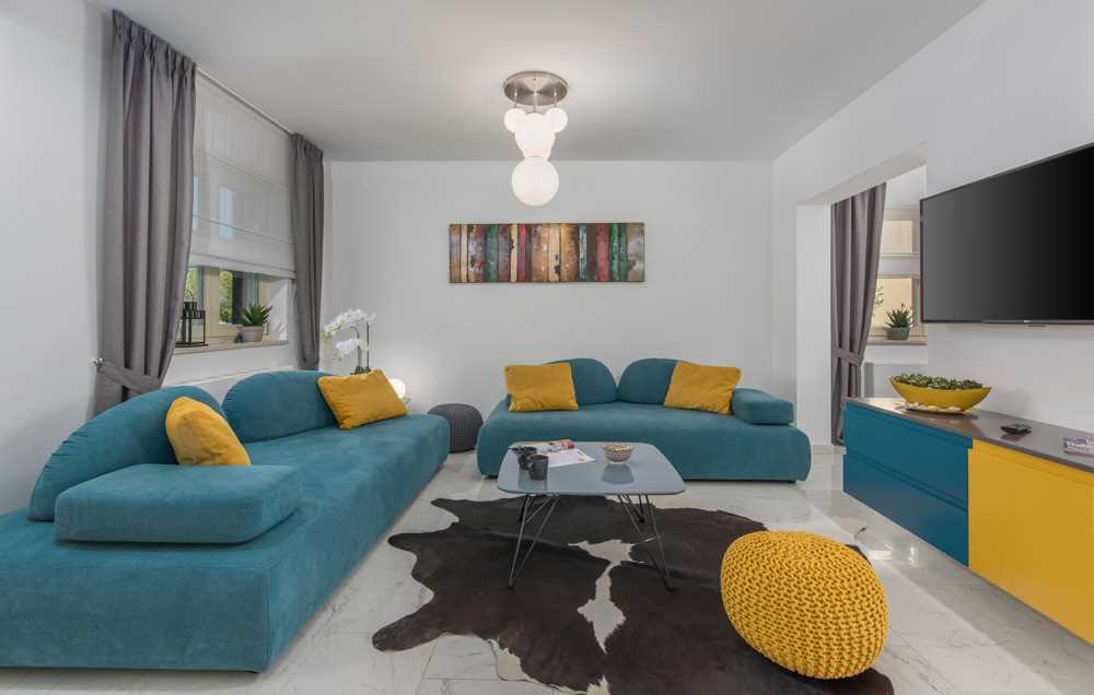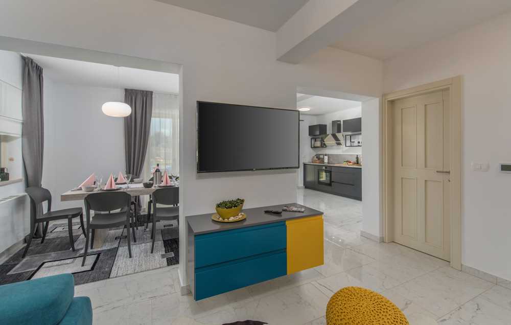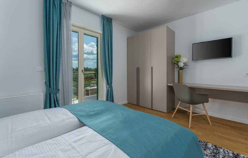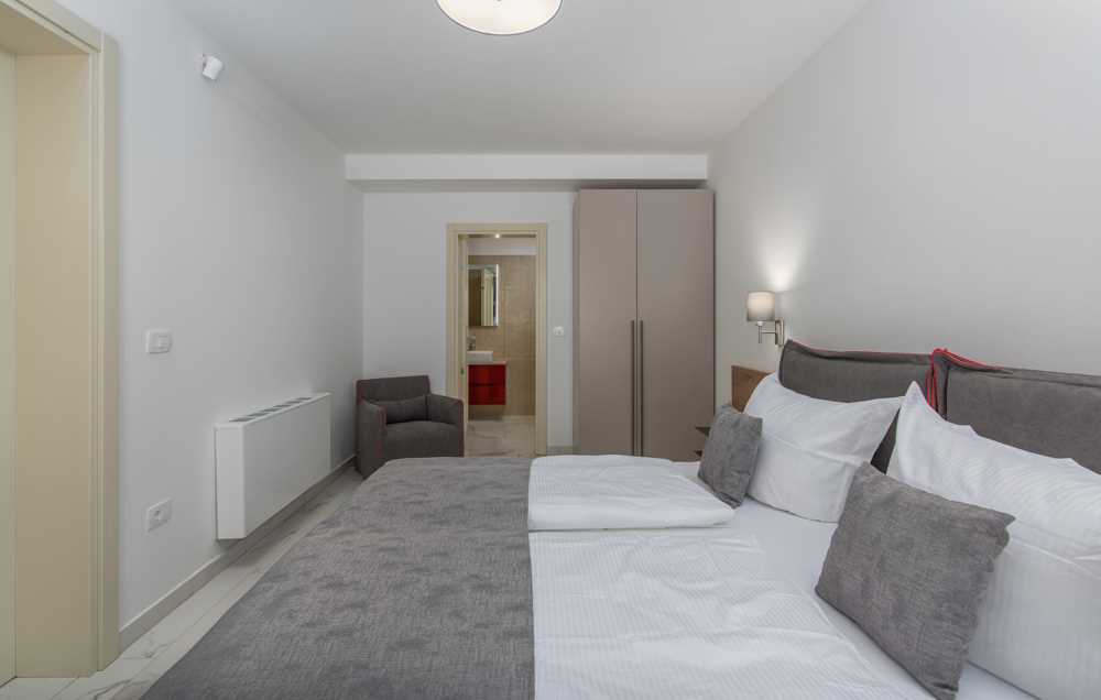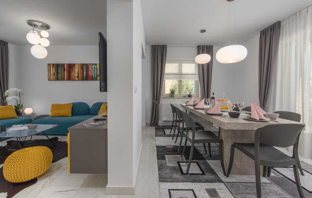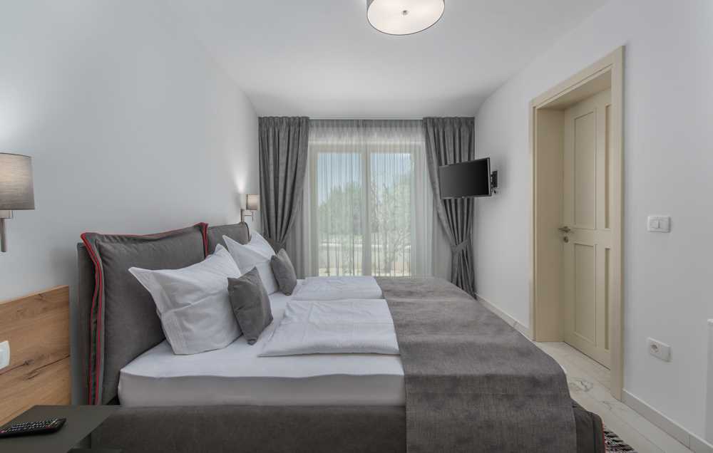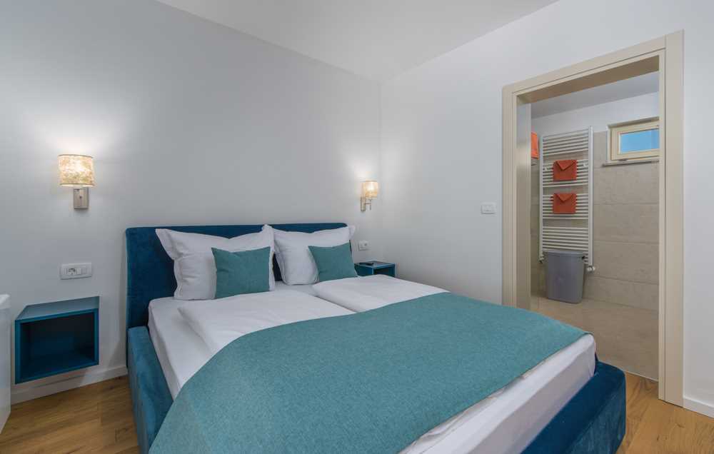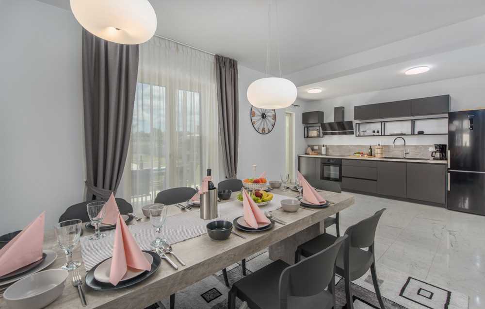 The villa was completed in 2019 and has since been available to holiday guests from near and far to relax from everyday life. The villa was furnished to a high standard in collaboration with an Italian designer. Most of the furniture was specially made for these villas. The house is furnished for 6+2 people. The combination of the houses with plaster and natural stone facades and many balconies reflect the Istrian architecture. The villa has a living space of 144m², which is spread over 2 floors. On the ground floor there is the kitchen, the dining area, the living room, a guest toilet and a bedroom with its own bathroom. On the upper floor there are two further bedrooms, each with its own bathroom. All rooms have a TV and are fully air-conditioned. The villa has its own pool and a large play and sunbathing area with a large BBQ grill. If you don't want to cook yourself, there are several good restaurants serving typical Istrian cuisine in the town and in the surrounding area. Pets are not allowed here.